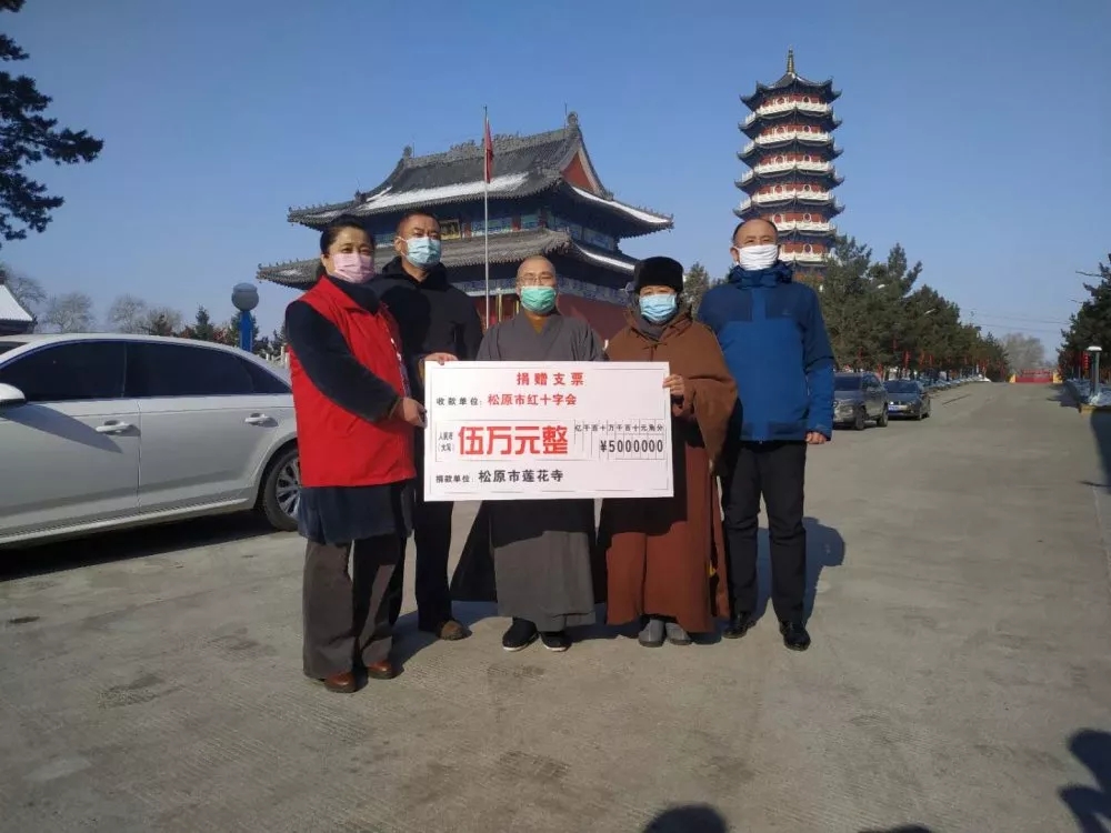 2020年2月4日,松原市哈达山示范区莲华寺僧俗二众向市红十字会捐款人民币10万元,专项用于支援松原市疫情防控工作。