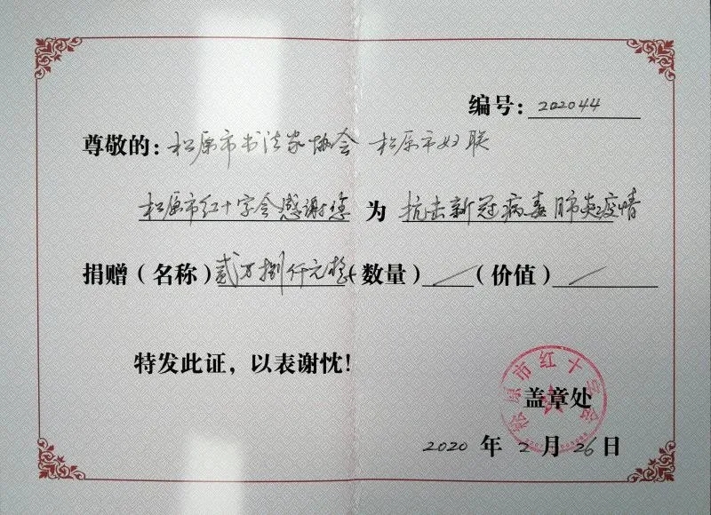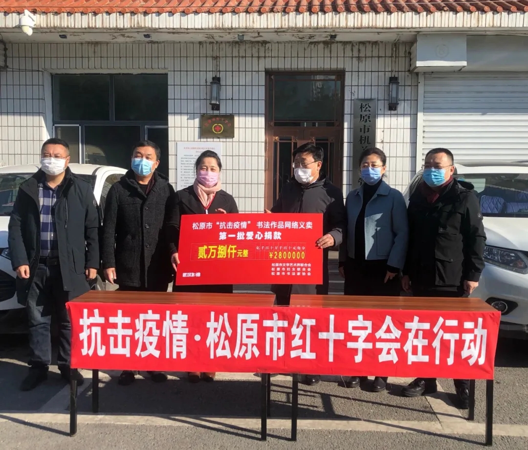 2月26日下午,松原市书法家协会将义卖所得善款2.8万元捐给松原市红十字会,定向用于支援湖北疫区疫情防控工作。松原书法人以实际行动,彰显书法人的使命担当,向书法家们和全国爱心人士致敬。