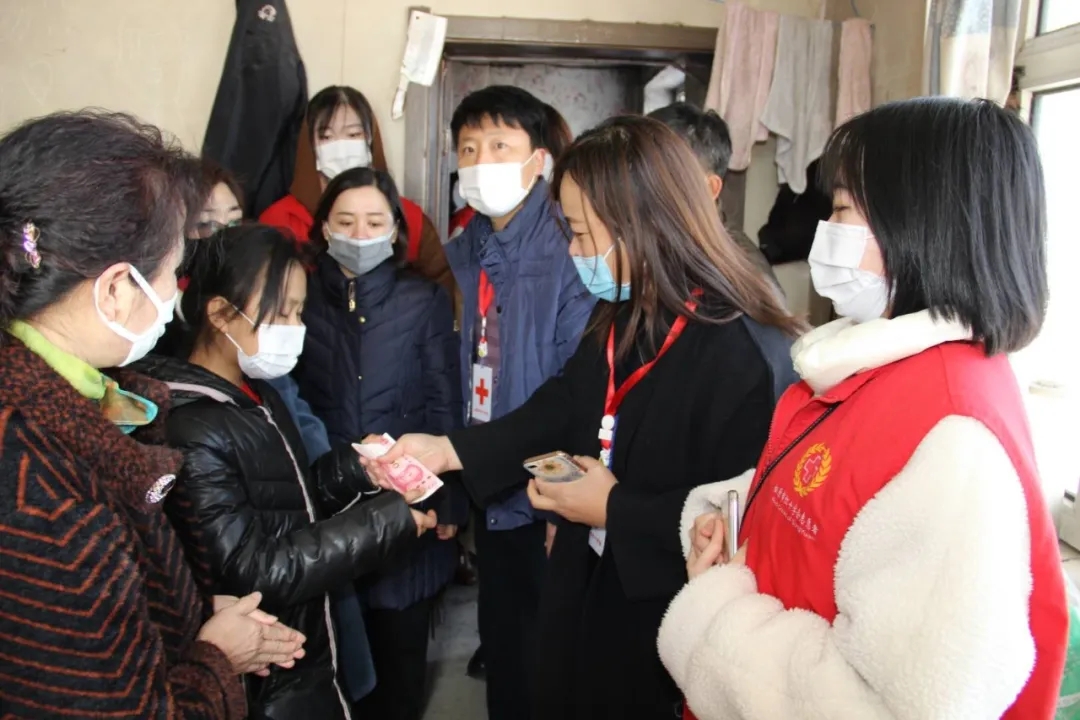 慰问活动献爱心 红十字志愿者赠人玫瑰手有余香