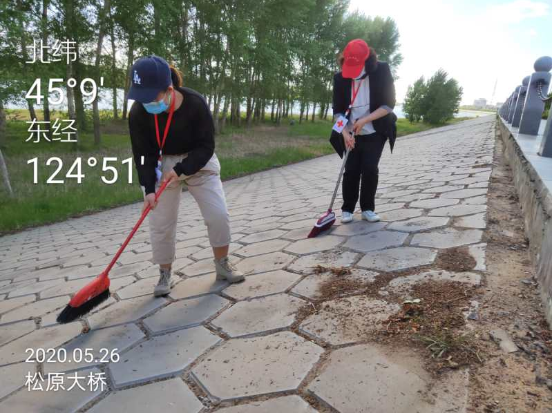 市红十字会党员干部自备铁锹、扫帚等清扫工具,来到宁江区沿江大坝,对责任区的白色垃圾、杂草、砂石等进行了彻底清扫,以实际行动助力“四城”联创。