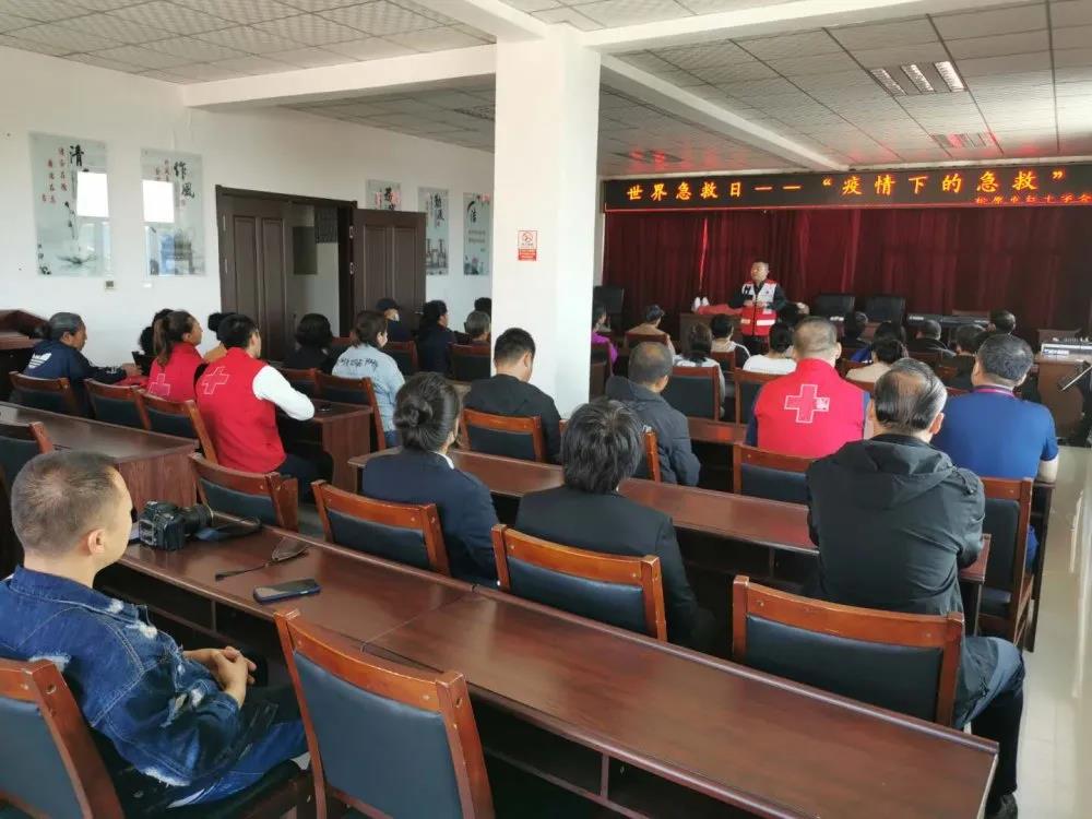9月11日上午,市红十字会秘书长司锐带领工作人员和红十字志愿者一行10人前往宁江区前瓦社区,开展松原市红十字会践行“书记项目计划”应急救护知识、送药进社区系列活动,前瓦社区工作人员及部分社区居民参加了此次活动。 活动现场,市红十字会开展了主题为“疫情下的急救”的应急救护培训活动。红十字应急救护培训师为前瓦社区工作人员及40余名居民群众普及了心肺复苏术、外伤止血包扎、海姆立克急救法、日常保健和多发疾病的防治等健康知识,通过互动式讲解和实际操作体验让每个居民都能听懂、都能学会应急救护知识和技能。培训结束后社区居民说:“通过这些活动真的能学到非常实用的应急技能,我现在知道怎么及时进行应急抢救、自救了。”“能在社区学到应急救护知识,这样的学习活动我肯定来体验啊!”.