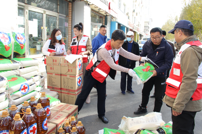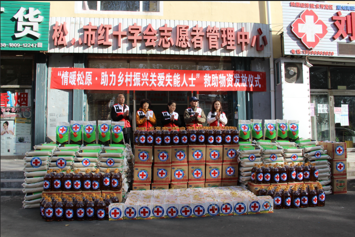 10月29日上午,“情暖松原·助力乡村振兴关爱失能人士”活动物资发放仪式在松原市红十字会志愿者管理中心举行,市红十字会全体工作人员、13个帮扶村驻村第一书记、部分红十字志愿者共30余人出席了仪式。红十字会工作人员和志愿者为各帮扶村驻村第一书记发放了共145份关爱失能人士爱心包,总价值36646元。每份爱心包装有两袋大米、两桶豆油、两袋小米,由各帮扶村驻村第一书记发放到救助的失能人士手中。.
