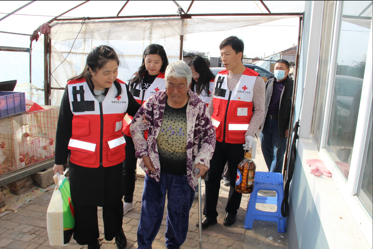 物资发放仪式结束后,市红十字会工作人员、志愿者一行前往前郭县吉拉吐乡扎罕布勒格村,为20名困难失能人士发放关爱失能人士爱心包。常务副会长李冬梅带领工作人员和志愿者走访慰问了74岁的失能老人刘大娘,为她送去关爱失能人士爱心包。刘大娘激动得流下泪水,表示非常感谢共产党,感谢红十字会,对今后的生活很有信心。.