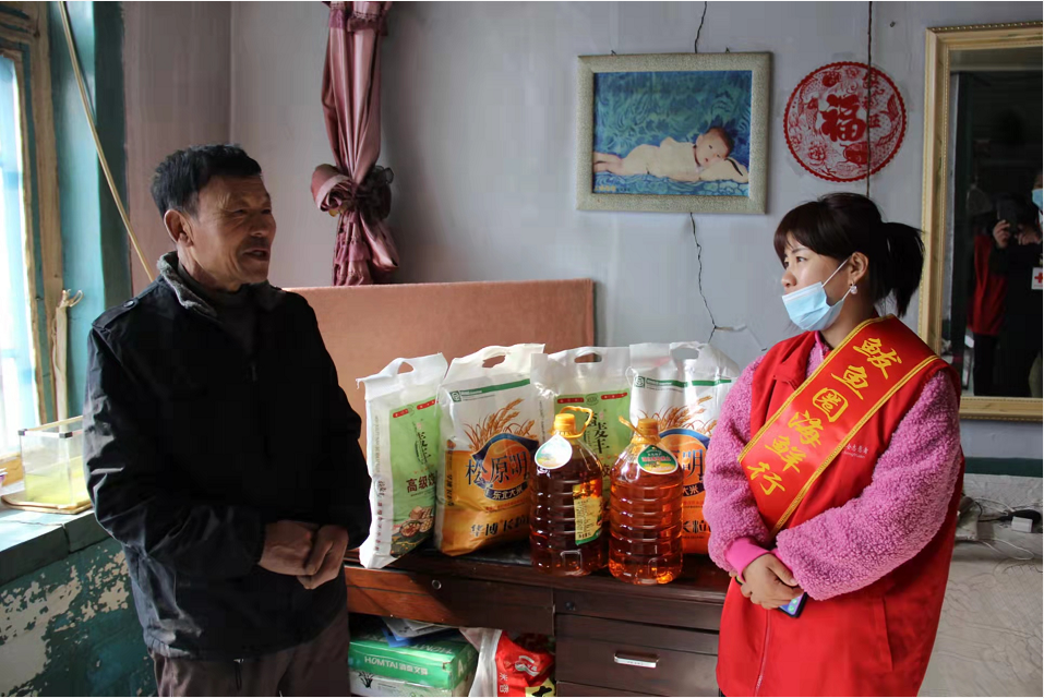 3月4日恰逢农历“二月初二”,上午9时,市红十字会组织工作人员和红十字志愿者、鲅鱼圈海鲜行(东镇店)店主,先后走访慰问了两户困难家庭,为他们送去了鲅鱼圈海鲜行(东镇店)定向捐赠的两袋大米、两袋面粉、两桶豆油等爱心物资。两个受助家庭感受到了社会大家庭的温暖,表示党和政府及社会爱心人士对他们的关爱使他们重拾对美好生活的向往。
