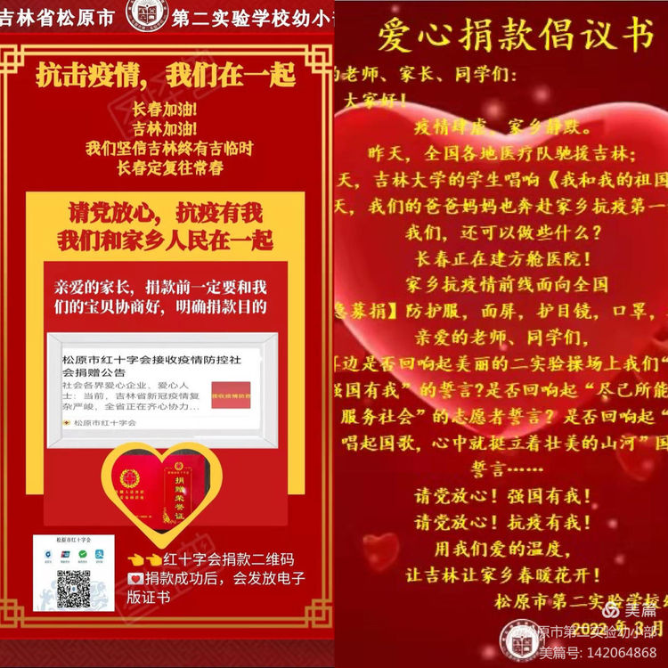 疫情有期,爱心无限,松原市第二实验学校幼小部师生捐款53695元