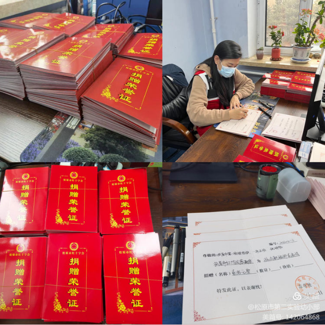 松原市红十字会的工作人员为孩子们写捐赠证书一直工作到凌晨。