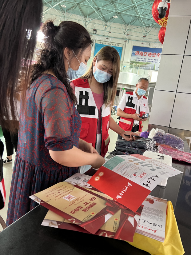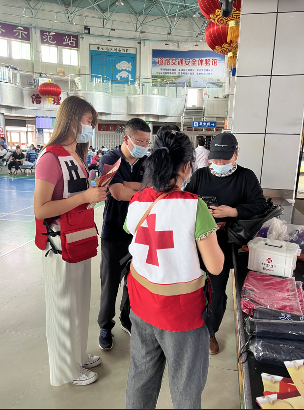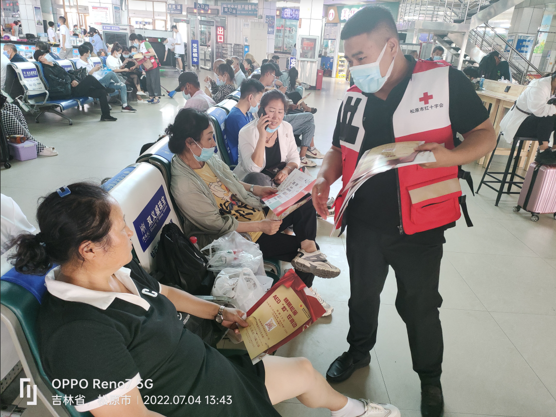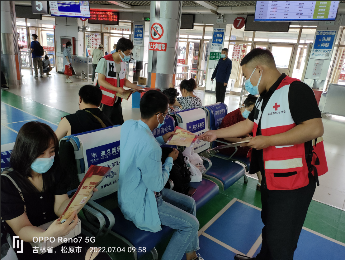 7月4日,市红十字会组织干部职工和红十字志愿者来到松原市客运站,开展情暖松原·AED“救”在身边宣传活动,向车站乘客发放宣传单,普及AED的用途和使用方法,为活动筹集捐款。通过宣传,乘客了解了AED对抢救心搏骤停患者的重要性,纷纷慷慨解囊献出爱心,工作人员和志愿者为参与捐款的爱心乘客发放了雨伞等纪念品。