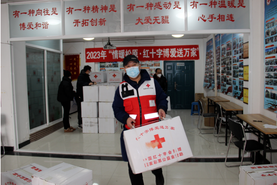 1月13日上午,2023年“情暖松原·红十字博爱送万家”启动仪式在松原市红十字会志愿者管理中心举行,红十字会工作人员为各县区红会、帮扶村边缘户发放了慰问箱和人道救助金,每个慰问箱中装有大米、棉衣、毛毯和糖果。