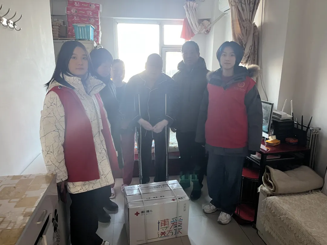 1月20日,市红十字会秘书长司锐带领干部职工和红十字志愿者入户慰问了3户困难家庭,并发放了中国红十字会总会提供的装有衣物、棉被、大米、糖果等生活物资的温暖箱;联合市委社会工作部,慰问了2名生活困难的外卖员,为他们发放了吉林省红十字会提供的装有毛毯、餐具、日用品等慰问物资的慰问箱。市红十字会心系困难群众和新就业群体,把党和政府的关怀送到了困难群众手中。