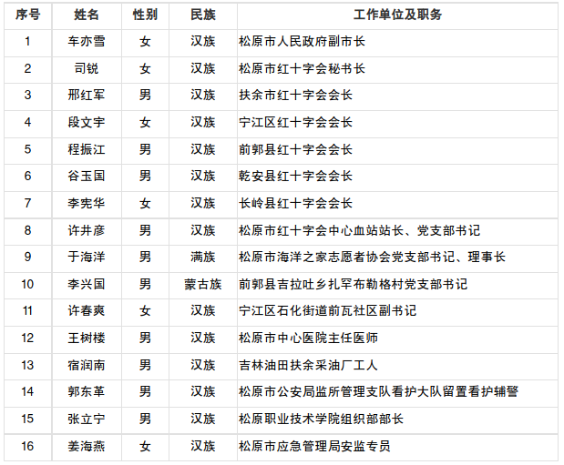附件:松原市红十字会推选吉林省红十字会第八次会员代表大会代表名单