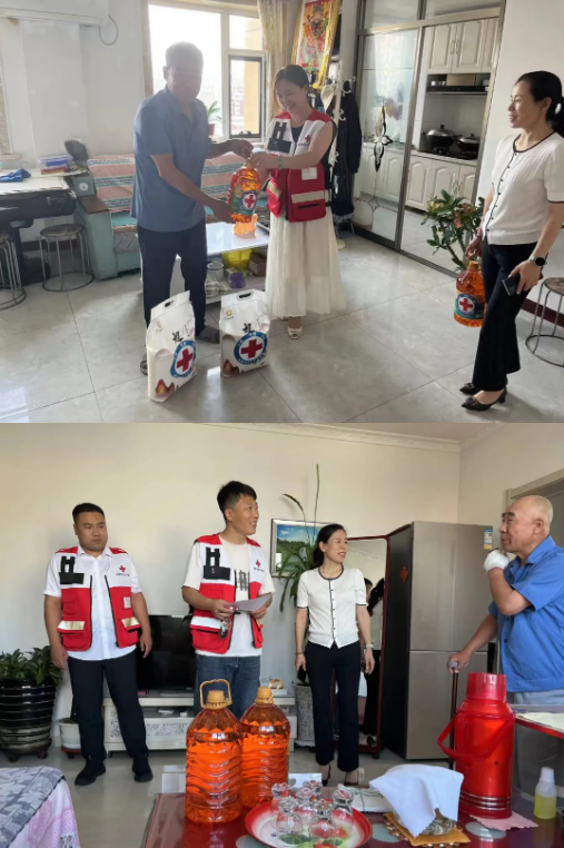 在中国人民解放军建军97周年即将来临之际,为贯彻落实《全国双拥模范城(县)命名暨双拥模范单位和个人表彰大会精神的意见》,市红十字会机关党支部结合本部门实际,开展“情暖松原·迎八一慰问老兵”活动,为“最可爱的人”送上节日的祝福。 7月25日上午,市红十字会工作人员和红十字志愿者一行在石化街道书记的陪同下分别看望了前瓦社区2名退役老兵,为他们送上大米、豆油等慰问物资价值600余元。这2名老兵均由前瓦社区向红十字会上报。在老兵家中志愿者们热情与老人话家常,详细询问了解他们的生活和身体状况,聆听他们的英勇事迹,青年志愿者同志很受老兵光荣事迹的鼓舞,感谢他们为国家作出的贡献。 退伍老兵表示感谢红十字会送来了党和政府的温暖和关怀,他们将继续发挥自己的光和热,为建设“幸福松原”贡献自己的力量。