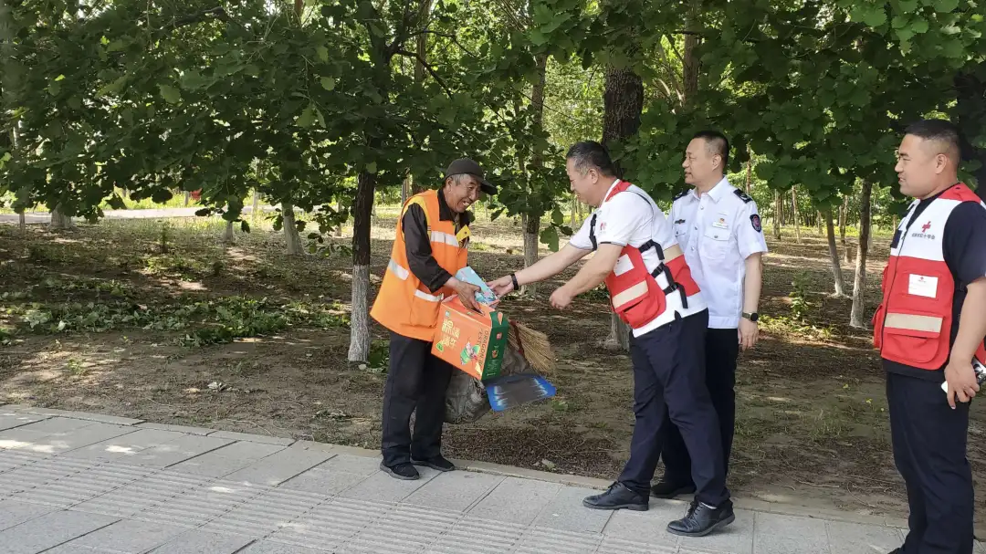 在这个本该是阖家团聚、踏青出游的好时节,环卫工人们依然坚守岗位,晨起暮归,默默奉献,用辛勤的劳动守护城市的“颜值”。为表达对环卫工人的敬意,松原市红十字会联合市烟草专卖局专卖管理科党支部开展了慰问环卫工人志愿服务活动。