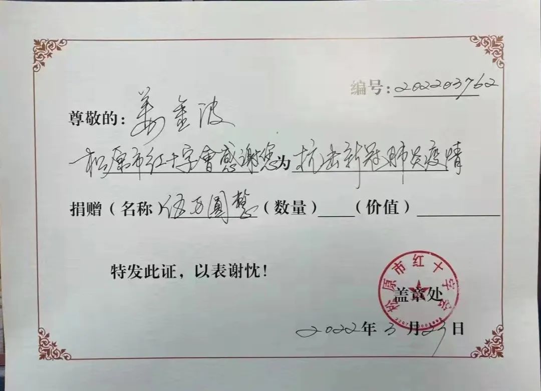 继3月20日,广东省吉林松原商会向松原市红十字会捐赠抗疫款物74600元之后,为继续支持松原疫情防控工作,广东省吉林松原商会继续驰援松原市。