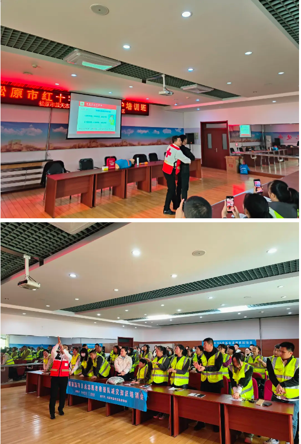3月27日,松原市红十字会举办1期应急救护培训班,应邀为松原市蓝天志愿者协会成员培训急救知识和技能。