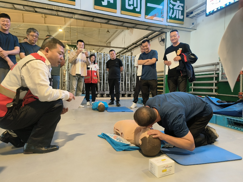 培训中,红十字会培训师结合真实的案例,以生动的语言为学员详细讲解了心肺复苏术、海姆立克急救法等知识技能,借助模拟人等道具指导学员分组进行实操练习,培训讲师对学员的心肺复苏按压手势、位置和力度等操作要领逐一进行指导与纠正。