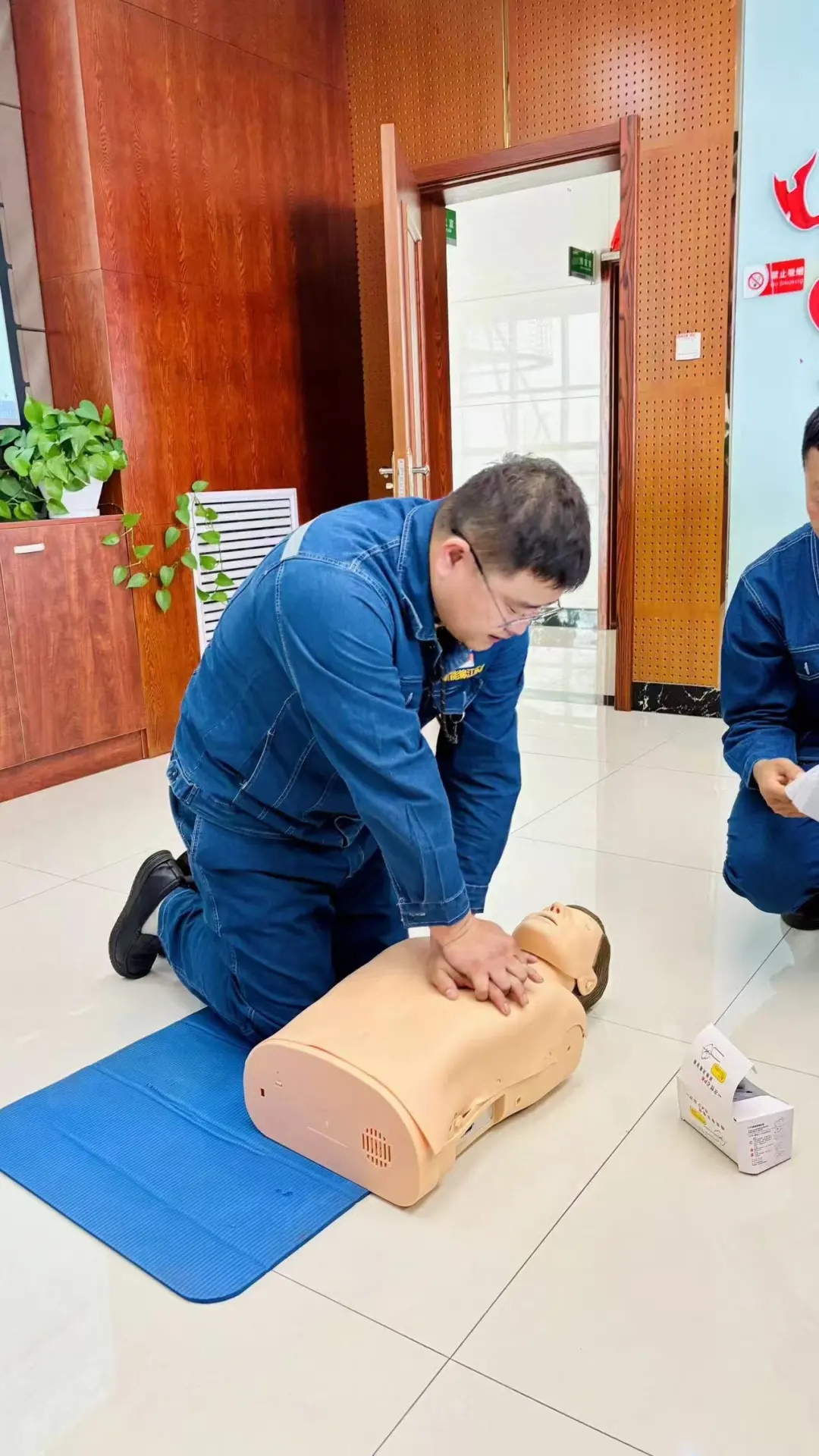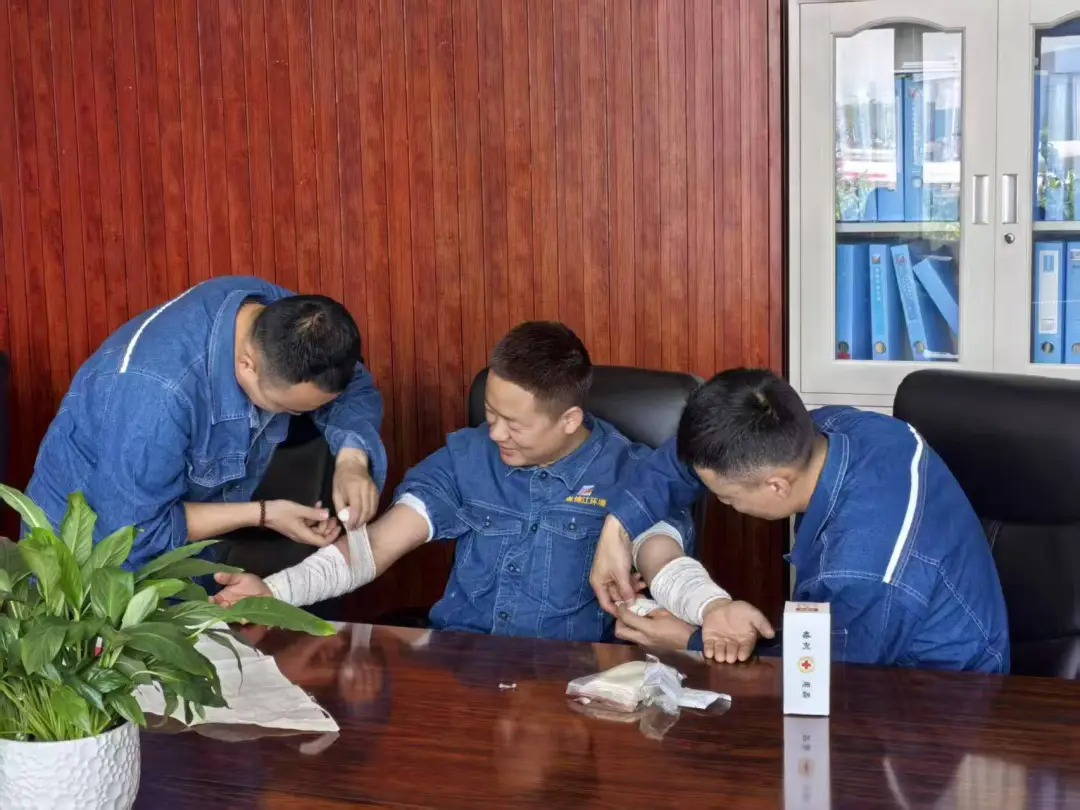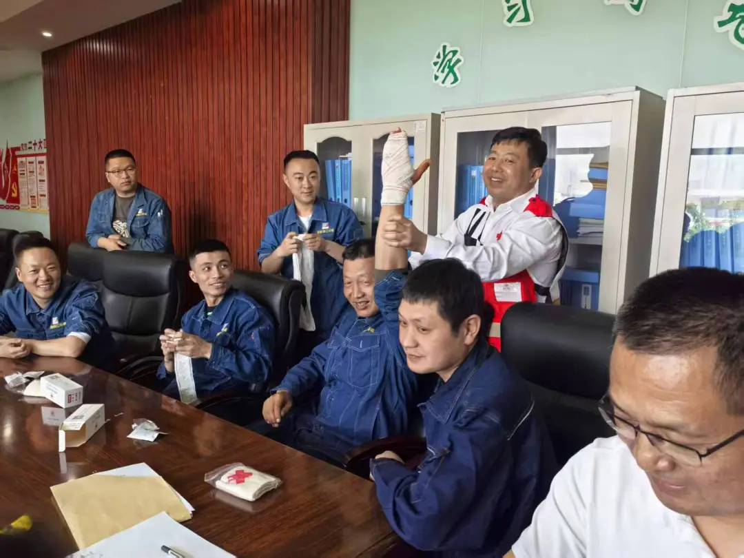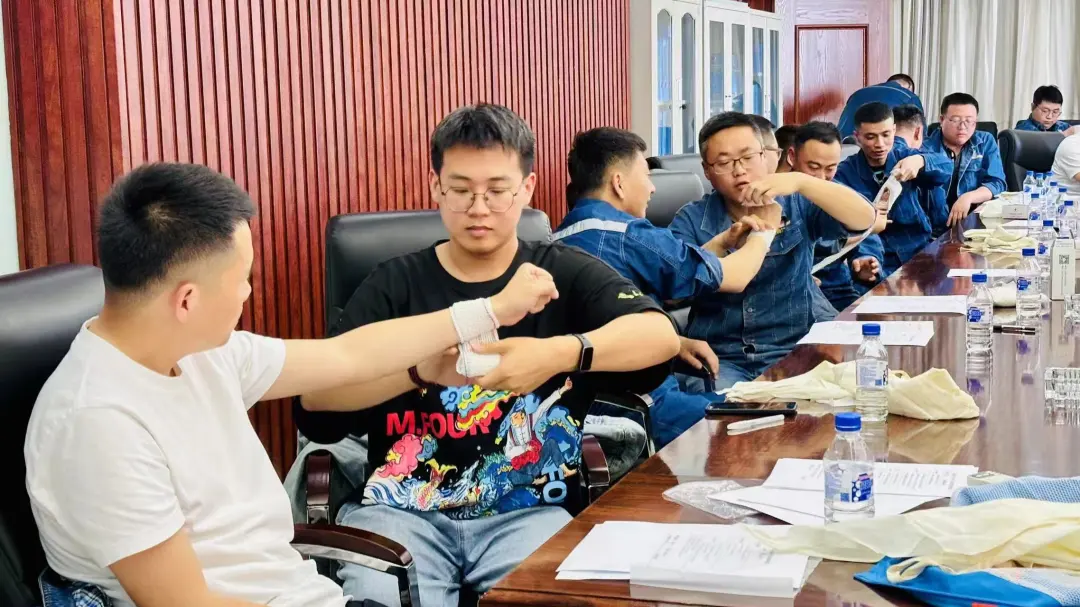 理论授课结束后,在培训讲师的指导下,学员们踊跃参与实操练习,相互合作,经过反复练习熟练掌握了心肺复苏术、创伤包扎等急救技能。