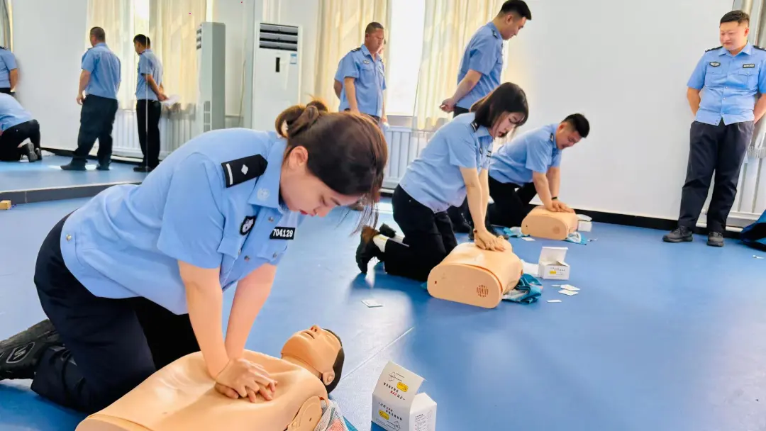 培训以“理论+实操+考核”的形式开展,旨在让公安干警掌握急救技能,为今后在执勤过程中及时开展救援工作奠定坚实基础。