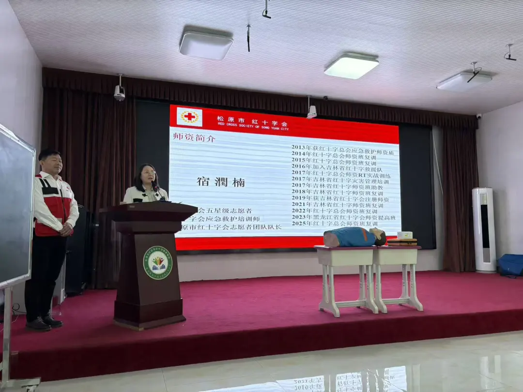 11月26日,松原市红十字会再次走进油田实验小学,继续开展应急救护培训,校领导亲自带领30余名教师走进培训课堂。