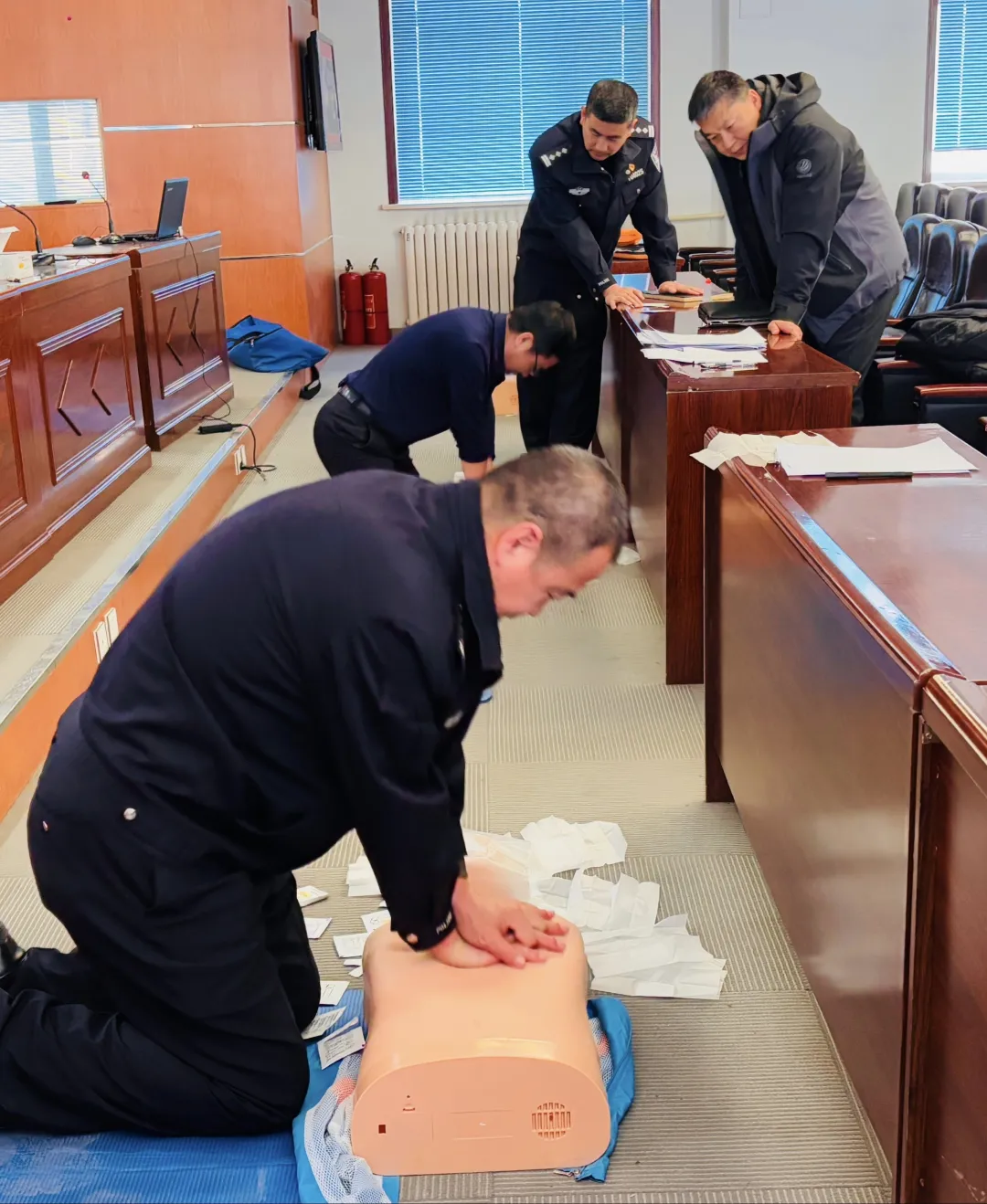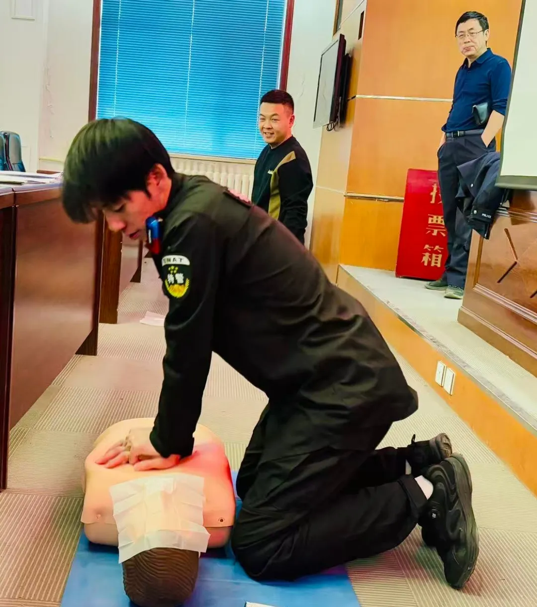 本次培训紧密结合公安干警的职业特点和需求,重点围绕心肺复苏术的操作流程、AED的正确使用、海姆立克急救法等核心内容展开。培训延续了“理论讲解+实操演练”的高效模式,红十字会培训讲师细致讲解了各项技能的操作要点、注意事项,同时普及了红十字运动知识。在实操环节,学员们学习热情高涨,在讲师的悉心指导下,认真利用模拟人教具和AED训练机反复练习,确保动作规范、步骤准确。培训结束后,市红十字会对所有参训学员进行了严格的理论与实操考核,通过考核的公安干警将获得红十字急救员证书。