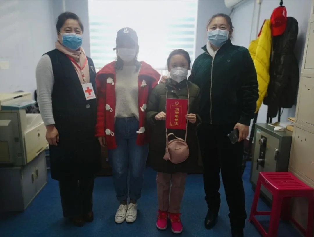 2月20日下午,在读小学三年级的綦淇在母亲的陪同下来到市红十字会办公室,为支持疫情防控工作捐款。