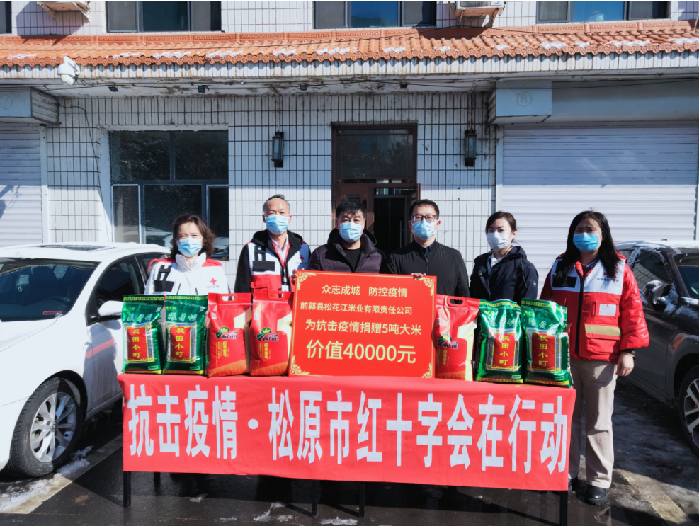 前郭县松花江米业有限公司捐赠5吨大米,价值40000元